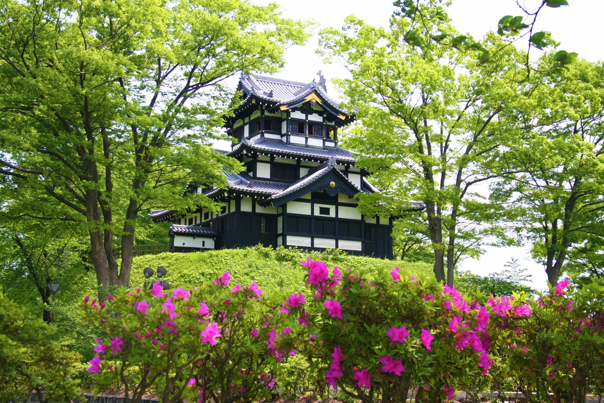 Walk for 20 minutes from JR Shibata Station (JR新発田駅 Shibata-eki), and I will reach the Shibata Castle Ruins Park, a popular place for rest and relaxation for the locals. The centrepiece of the park is Shibata Castle, built between 12th and 14th century. It is also known as "Iris Castle" (菖蒲城 Ayame-jō), and the park is open throughout the year.