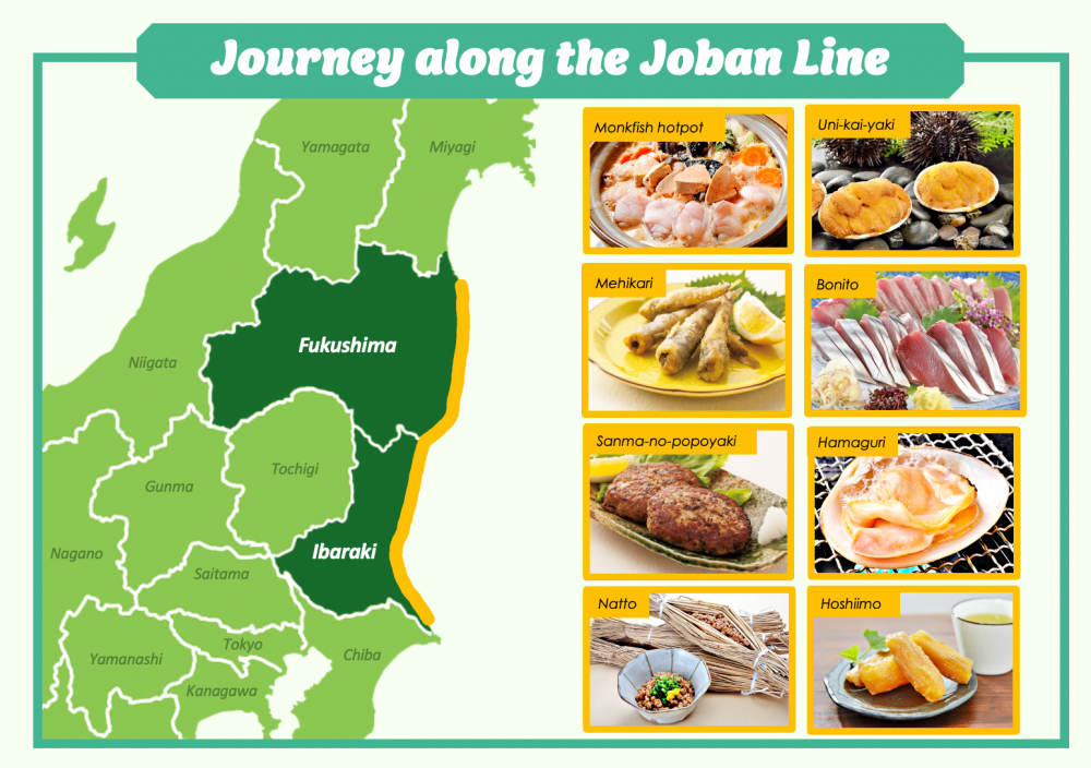 Discover the delicious food along the Joban Line. (Image credit: 東北観光推進機構 and 茨城県観光物産協会)