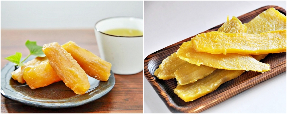 - hiraboshi (平干し)—sweet potatoes are sliced into thin, wide strips before drying