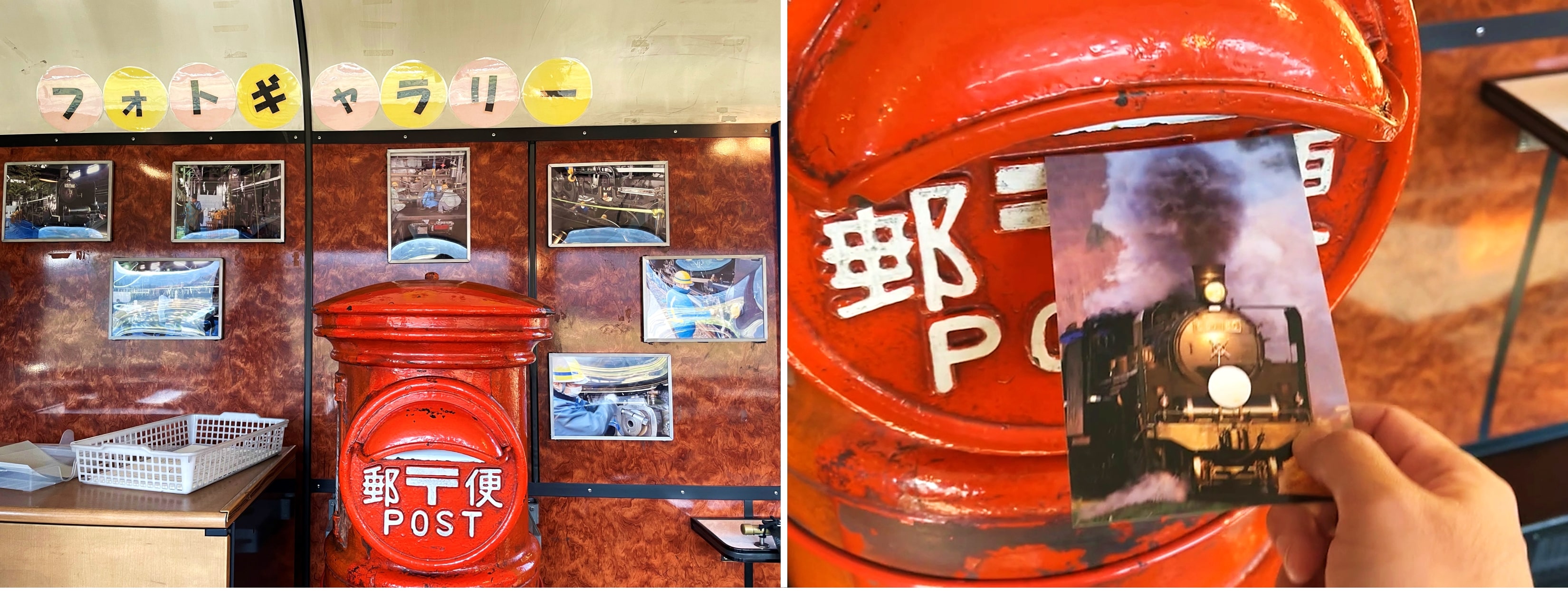 Post box in Car 4 (left) and Jak sending a postcard (right). (Image credit: Japanmase)