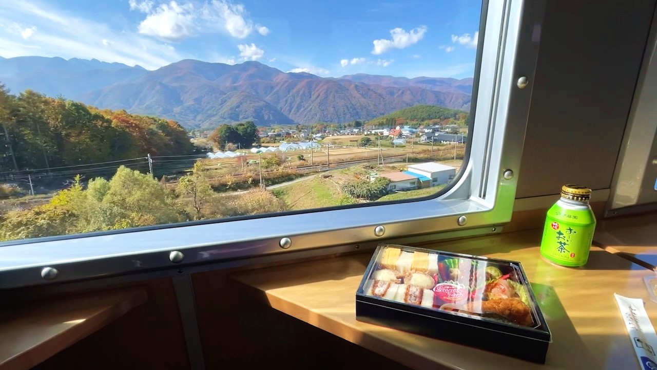 As the train travels between Yamanashi and Nagano, passengers will get an amazing panoramic view of the Yatsugatake Mountain Range (八ヶ岳連峰 Yatsugatake-renpō), which rests on the Yamanashi-Nagano border. Plus, they will witness wide-open green fields in the summer, and red and golden foliage in the autumn.