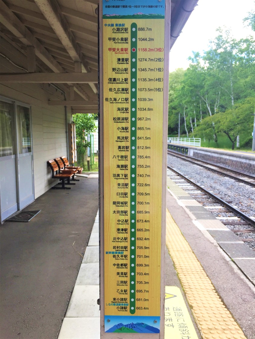The station is also located in Minamikami (南牧村), a village that is famous as a production area for highland vegetables such as lettuce and cabbage. Nagano Prefecture is widely known for its amazing highland vegetables thanks to its high elevations, clean air, and access to mountain spring water, and here is one of the places where such vegetables are grown and harvested. Throughout their ride on the train, passengers can see many of such farms in Minamikami and areas along the line.