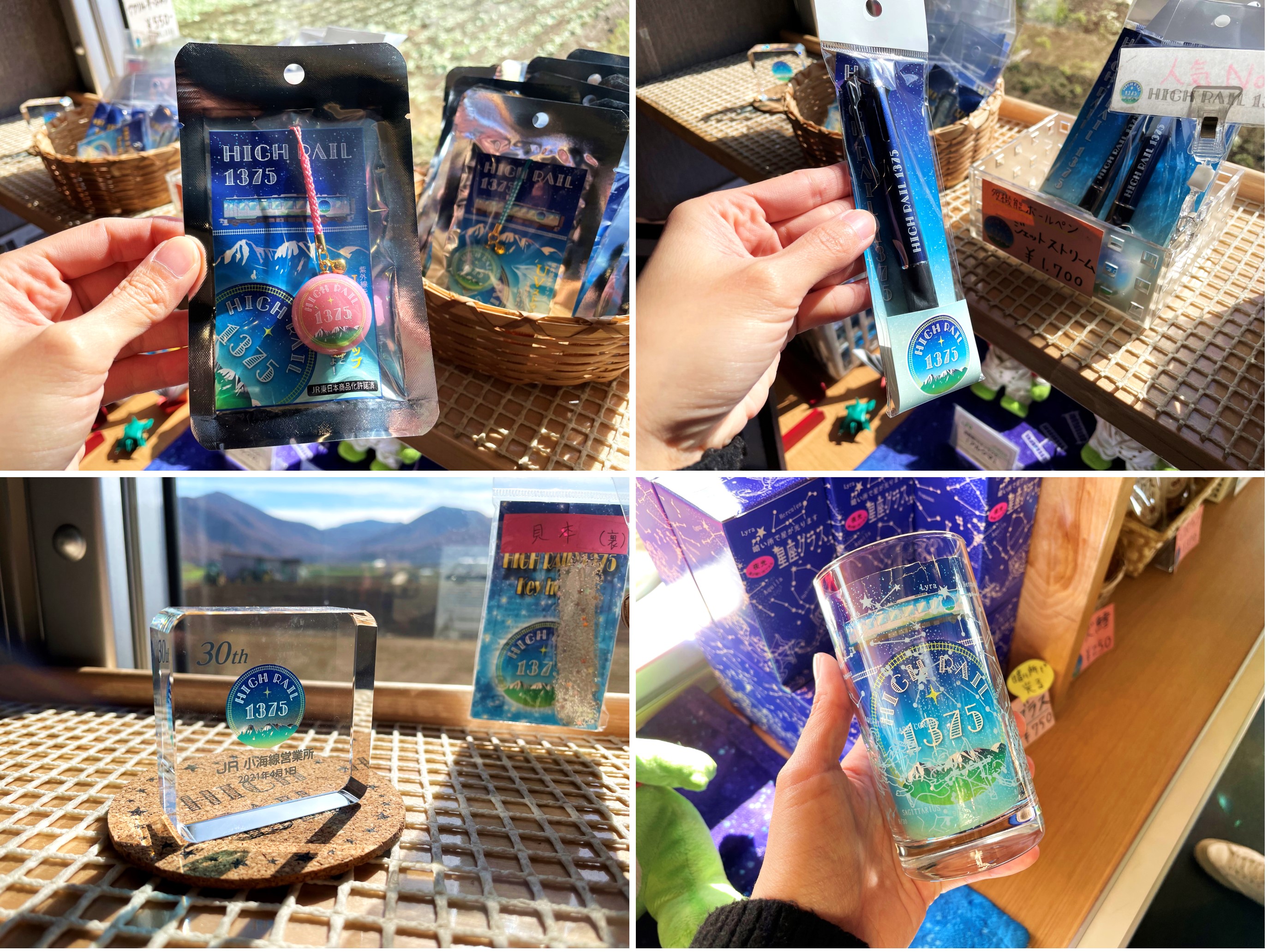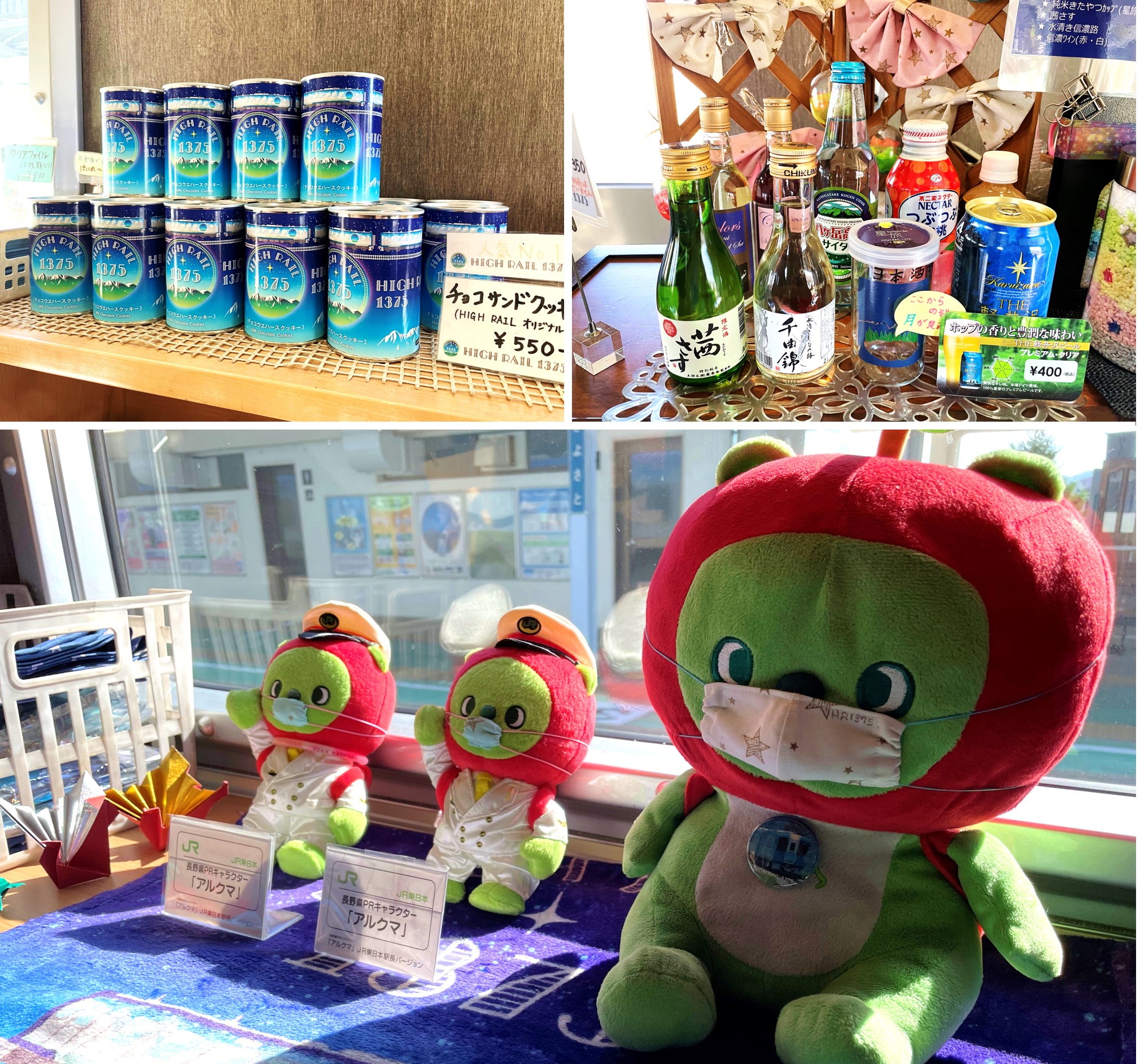 Do you know another common theme when it comes to Joyful Trains? Souvenirs. At the end of Car 1 is a sales corner where passengers can indulge in a wide variety of limited edition HIGH RAIL 1375-themed souvenirs. Keychains, pens, pencil case, folders, you name it. There are also specialty snacks such as milk chocolate cookies, and drinks such as ciders, sake, and beers. Jak and Emmie also spotted Arukuma, Nagano's cuddly mascot, at the corner!