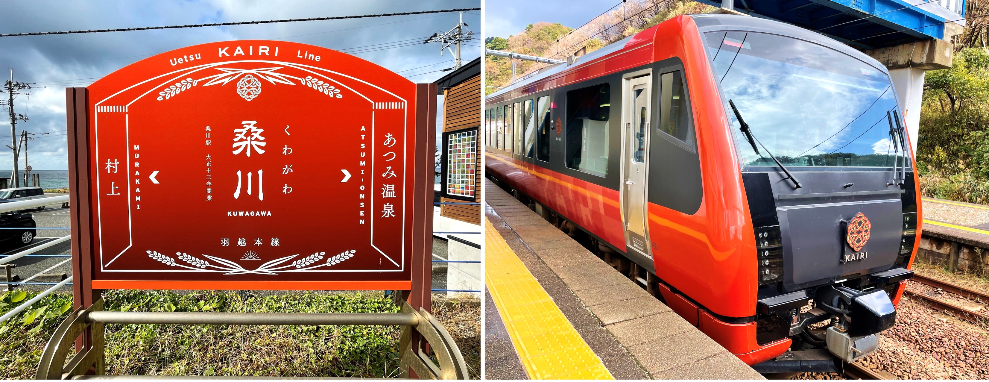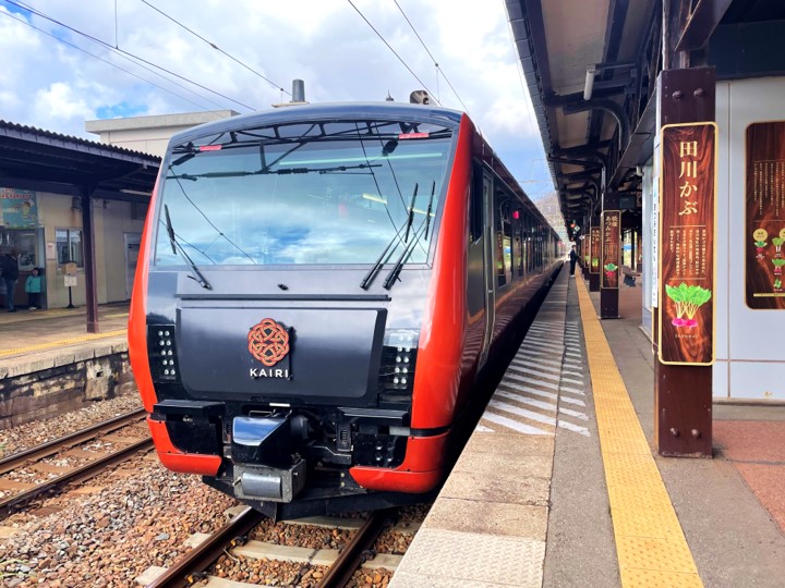My friends Jak and Emmie had the chance to ride the KAIRI a while ago, in the autumn season when the beautiful red and yellow foliage are in full view. To be able to go on this train trip during this season was such an incredible experience, and I want to share with you their journey on this train as it travelled along the coastline of the Sea of Japan.