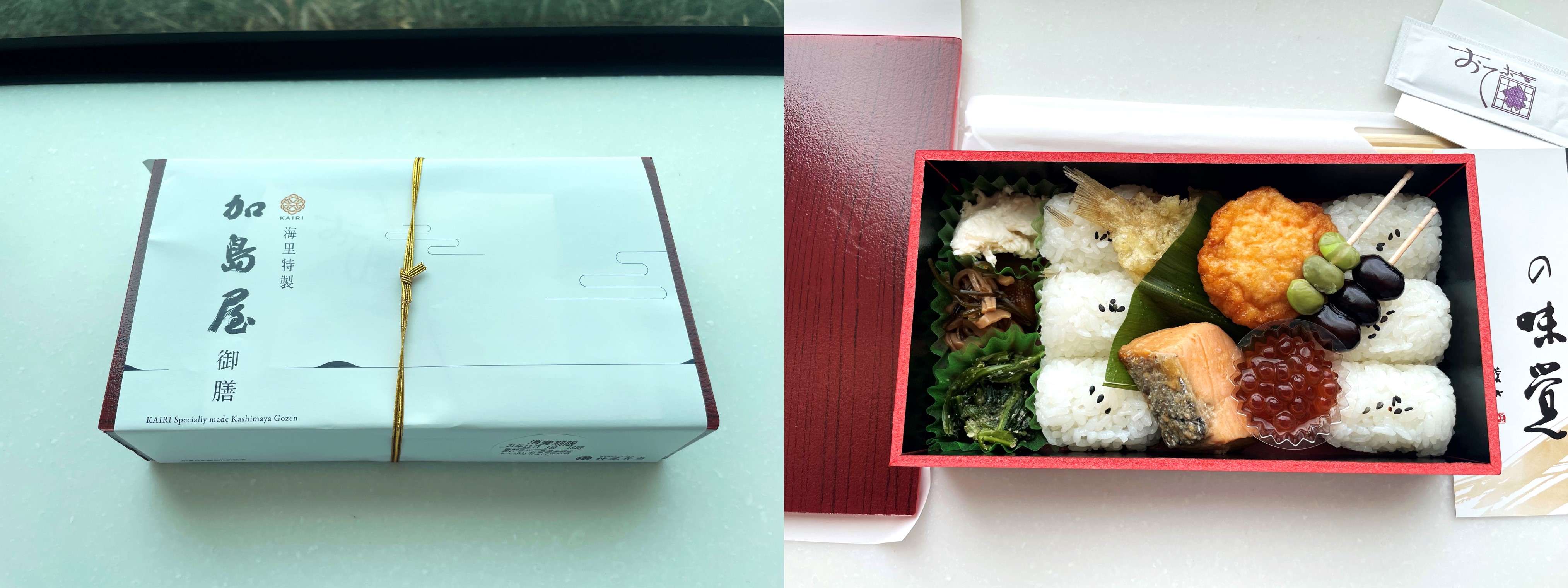 For passengers who plan to ride the KAIRI without a travel package, they can also opt for a lunch box (弁当 bentō). One example of a lunchbox that they can enjoy is by Niigata Kashimaya (加島屋), a Japanese restaurant with a long history of preparing food with local ingredients since its establishment in 1855. It includes local specialty dishes such as king salmon with miso pickles, squid pickled with soya sauce, Shinjo shrimp, and Koshihikari rice from Uonuma. Do note that passengers must make a reservation in advance for this lunch box, by 3 days before departure.