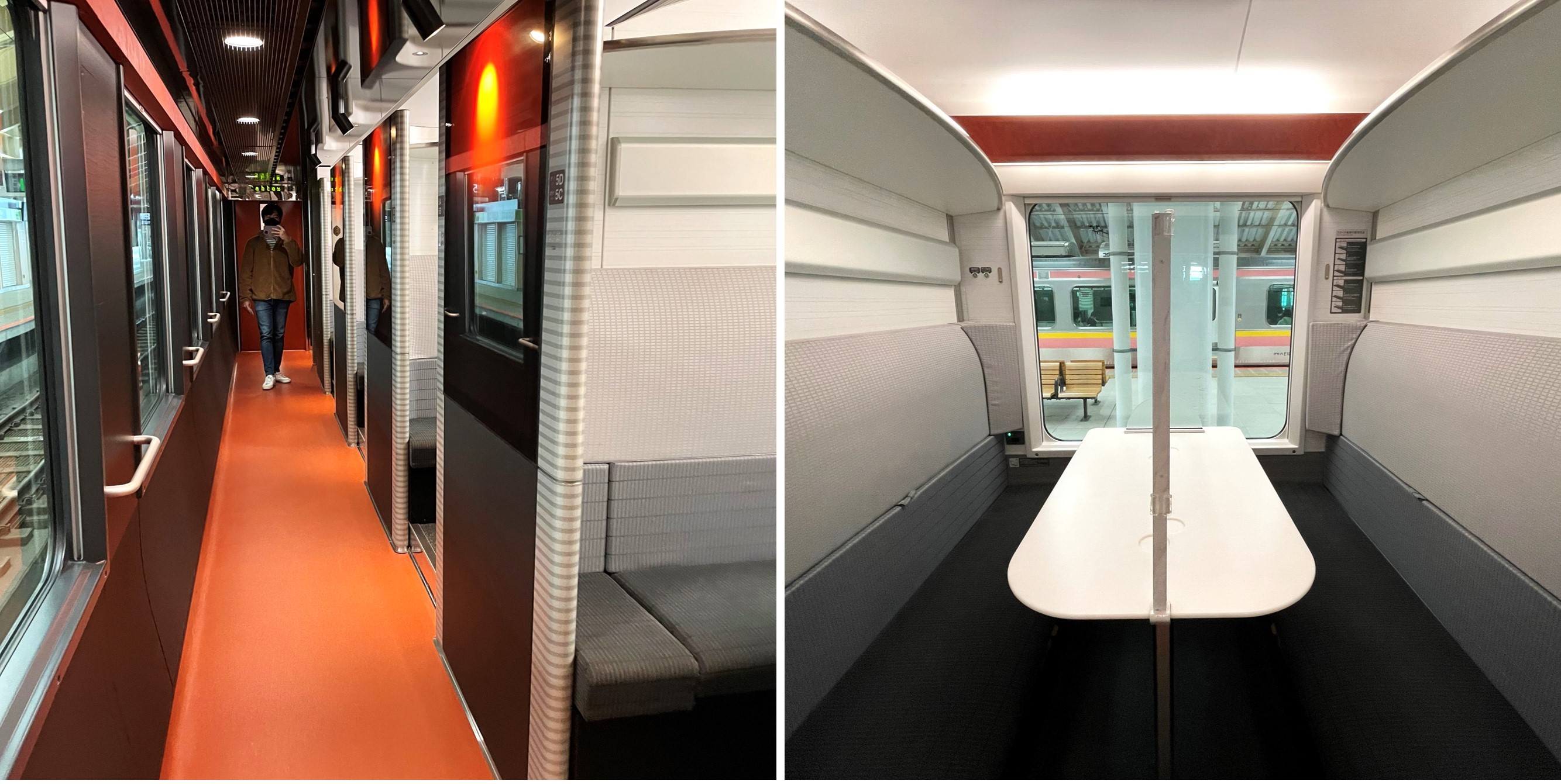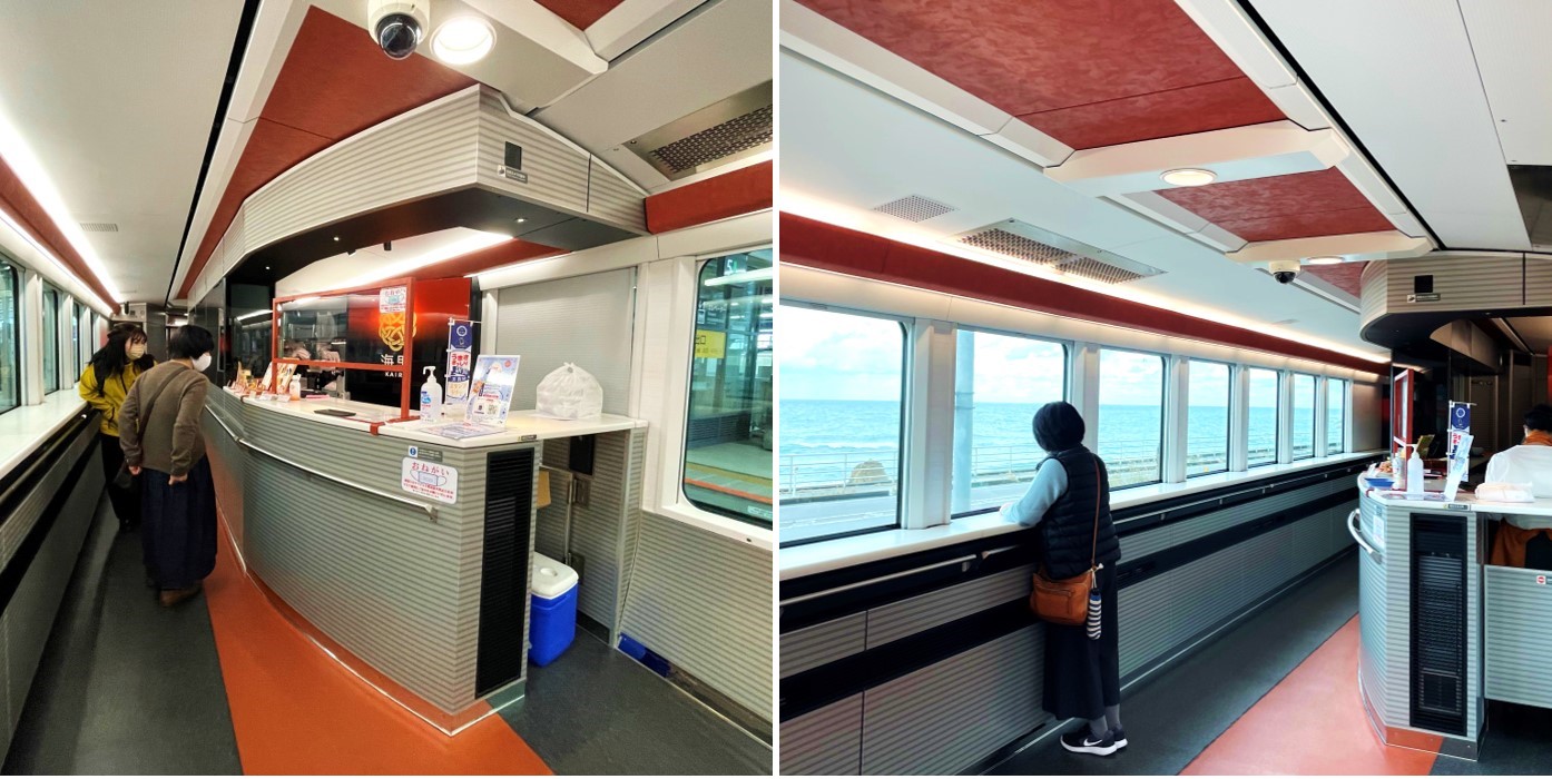 Car 2 is another passenger car, but here it features cosy compartment seats instead. Such seats are great for small groups of people who value some privacy during their time on the train, as well as families who would like to be seated together. But one unique feature Jak and Emmie noticed was how all the seats are only on one side of the car, and it’s for a simple reason: they are located on the side that directly faces the Sea of Japan. This way, all passengers can have a full view of the glistening sea as the train makes its way along the coastline. How cool is that!