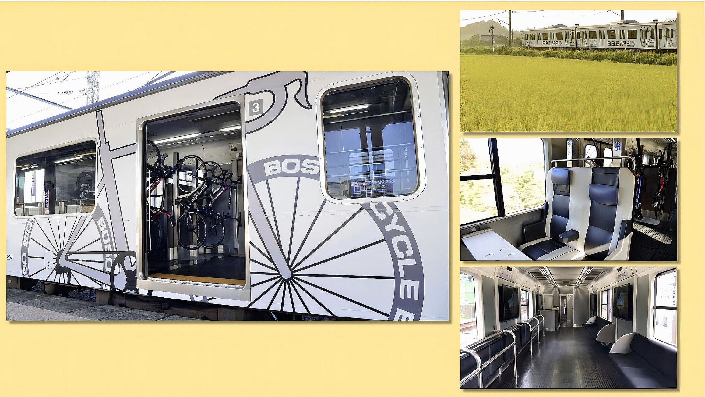 B.B.BASE, which stands for Boso Bicycle Base, is one of JR East’s Joyful Trains. It’s a rare train which allows you to travel with your bicycle around Chiba in a cool way.