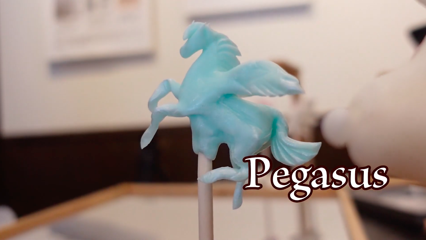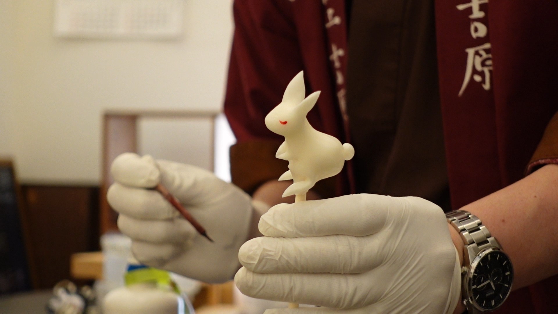 Next, Koi-chan visits a traditional candy store and joins a candy sculpturing workshop. He was trying his best to make a candy rabbit, but it seems a little difficult for him. Yoshihara-san, the expert candymaker, shows us the way to make a candy “Pegasus”–the mythical winged horse.