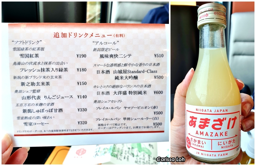 KAIRI’s drink menu (left) and amazake (right). (Image credit: JR East / Carissa Loh)