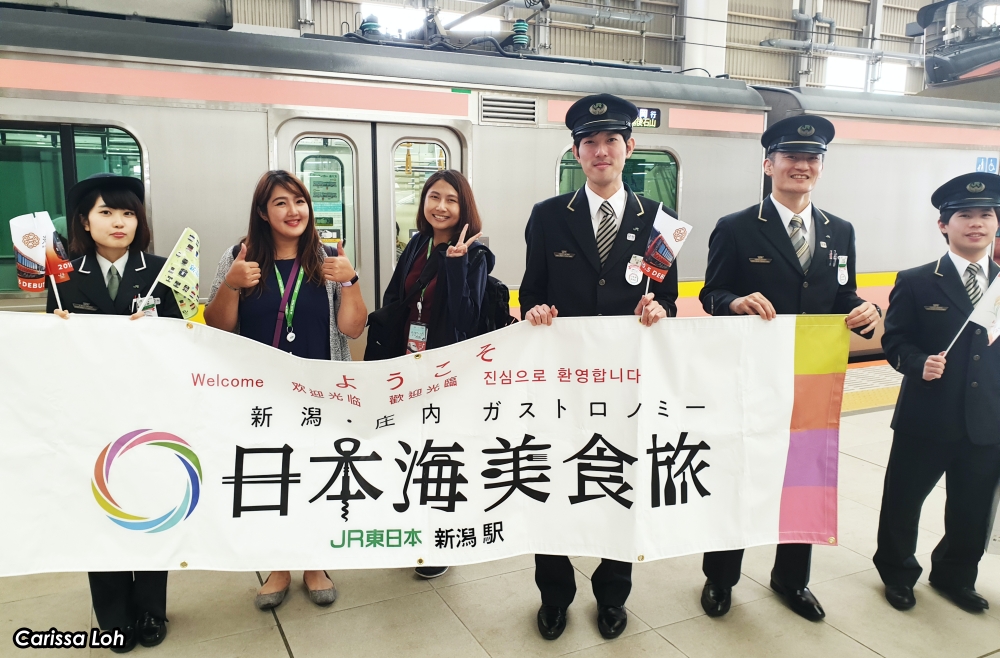 Posing for a photo at Niigata Station. (Image credit: JR East / Carissa Loh)