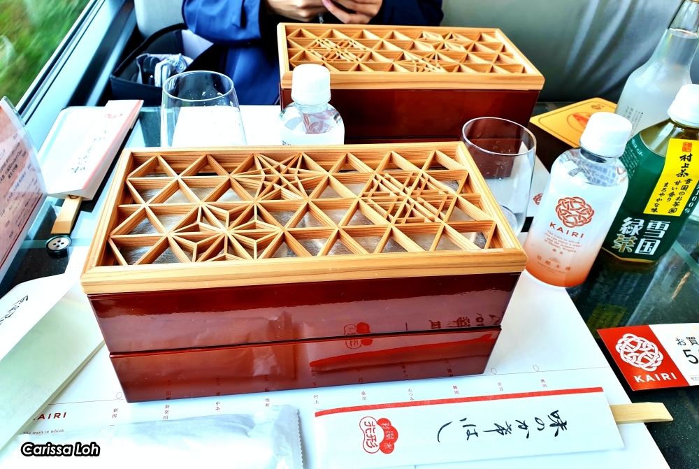 If you’re not riding the dining car but still want a part of the KAIRI’s gastronomical experience, there are also KAIRI special pre-order bento (弁当 lunch box) available for all passengers. The outbound journey features a bento made with locally-produced Niigata ingredients (海里特製加島屋御膳 Kairi tokusei kashimaya gozen), while the inbound journey features a bento made with locally-produced Shonai ingredients (海里特製庄内弁 Kairi tokusei shōnai ben).