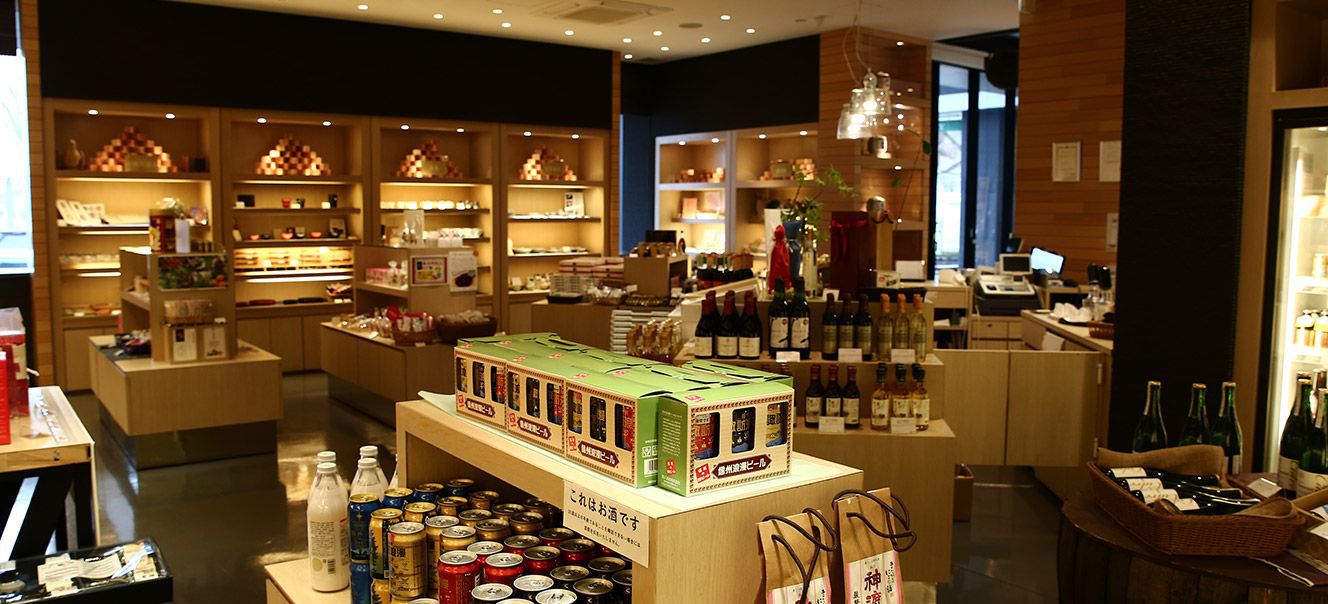 On the 1st floor, you can enjoy shopping for Shinshu specialty souvenirs like local crafts, as well as foods such as ham, pickles, jams, and local sake. There is also a bakery and café next to it where you can have a light meal. At the restaurant on the 2nd floor, you can enjoy a main dish which comes with a buffet of seasonal vegetables.