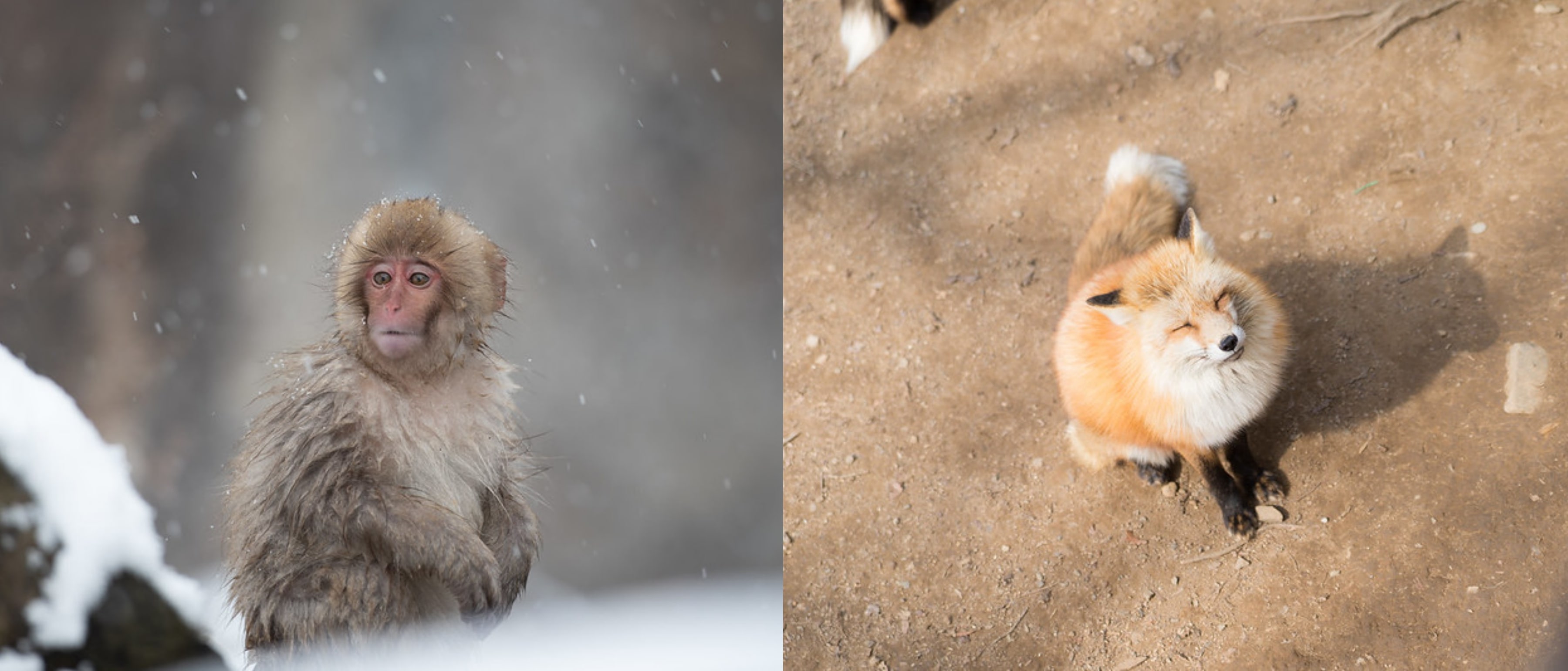 Snow monkeys in Nagano, and red foxes in Miyagi. (Image credit: Koji Ishii / CC BY 2.0 (left), oonnuuoo / CC BY 2.0 (right))