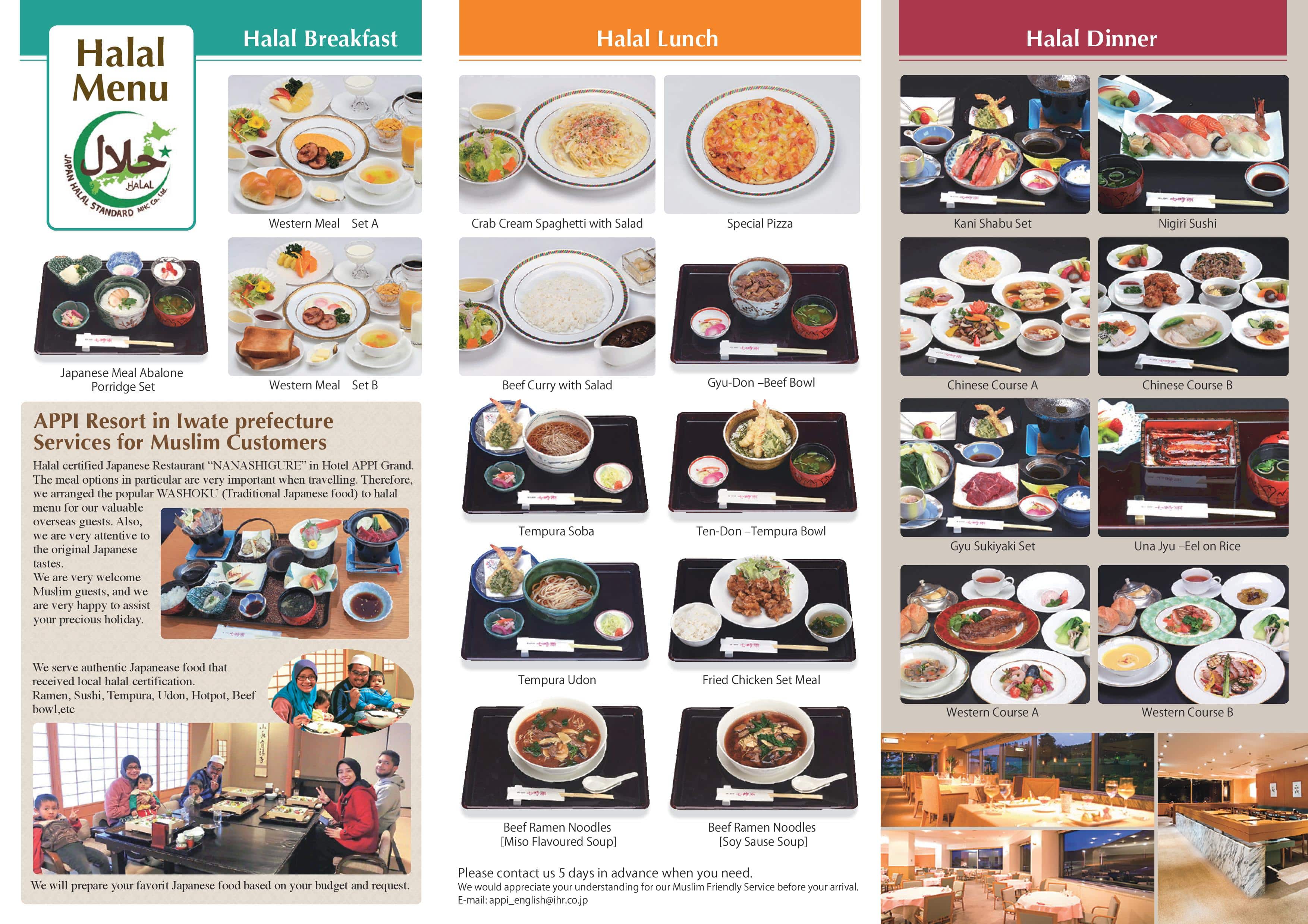 Halal menu at Nanashigure restaurant in Hotel APPI Grand. (Image credit: APPI Japan)