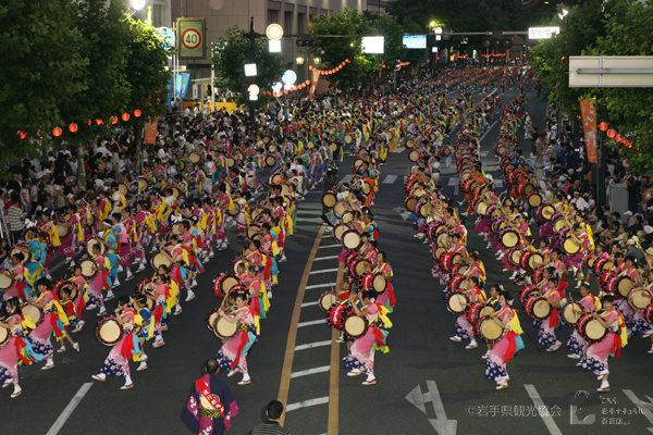 During this festival, many ostentatiously decorated floats parade through the city along with 200 participants for each float while playing taiko drums and other musical instruments. The festival features other activities as well: there is a horseback archery ceremony at the Morioka Hachimingu Shrine (盛岡八幡宮), and even a night parade takes place from evening onwards!