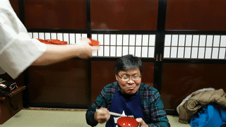 Attempting the wanko soba challenge. How many do you think he ate? Answer in next photo. (Image credit: JR East / Carissa Loh)