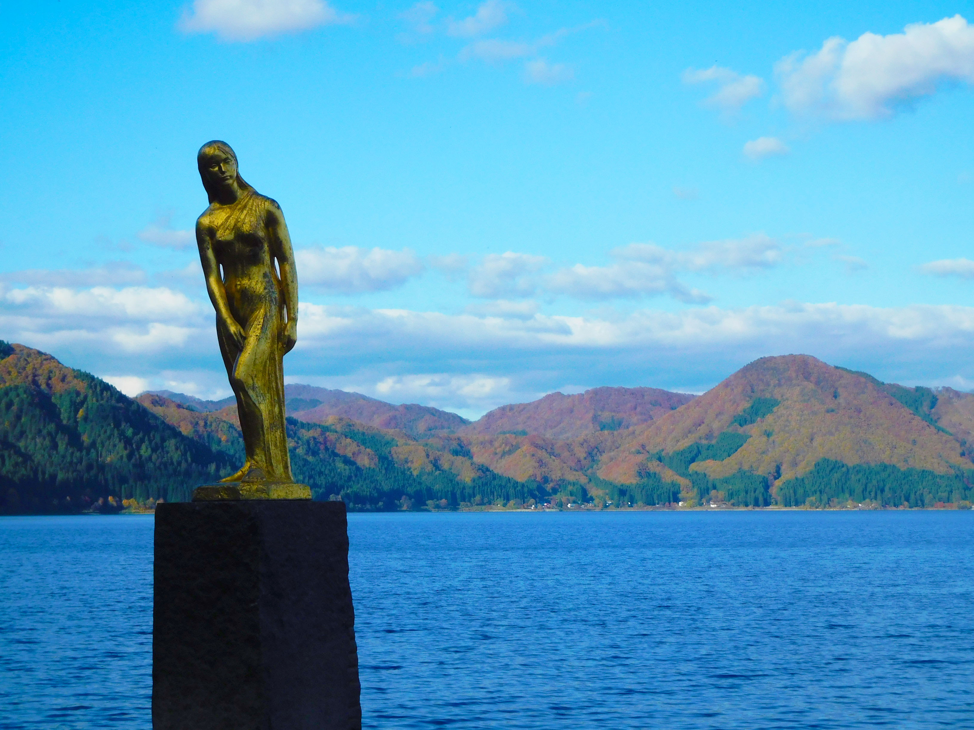The statue of Tatsuko stands next to Lake Tazawa. (Image credit: Akita Prefecture)