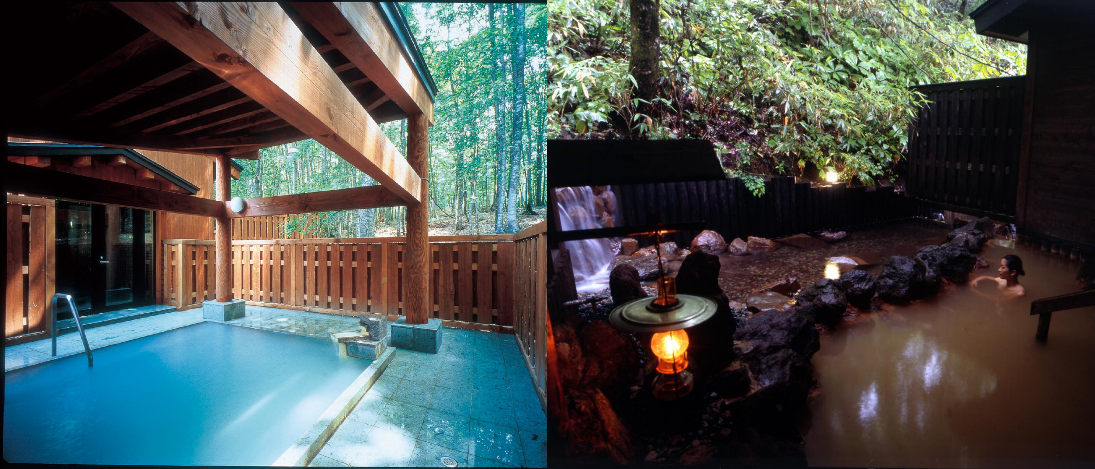 Nyuto Onsen, known for its amazing natural surroundings and hot spring water. (Image credit: 休暇村乳頭温泉郷 (left), 乳頭温泉郷妙乃湯 (right))
