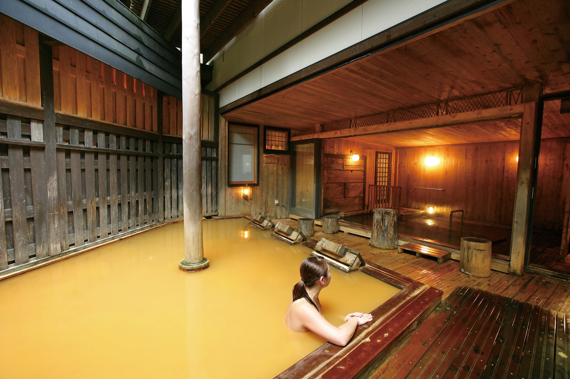 Taenoyu has another unique bath: an indoor one designed with rocks around the edges, and with a distinctive gold-orange hue water. The water is high contents of magnesium, calcium, and sulphur, which are beneficial for people suffering from skin conditions, arteriosclerosis, and digestive organ diseases.