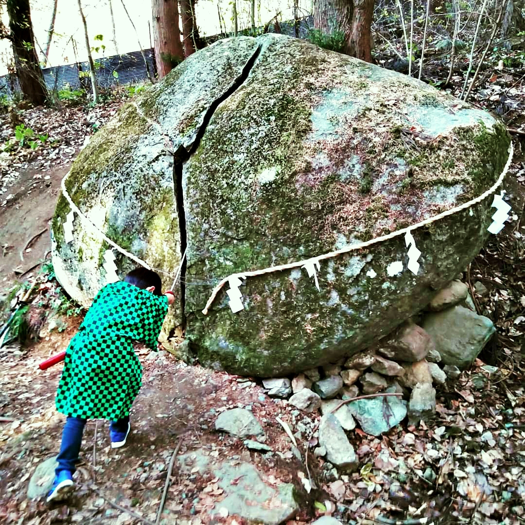 Just a 20-minute walk from the zoo and Garyu Park is the Sakatayama Symbiotic Forest, which is also regarded as Demon Slayer-related place. Inside the forest, there is a rock named Dragon’s Split Boulder (竜の割石 Ryū-no-wariishi), and it is said to resemble the rock which is fractured by Kamado Tanjiro.