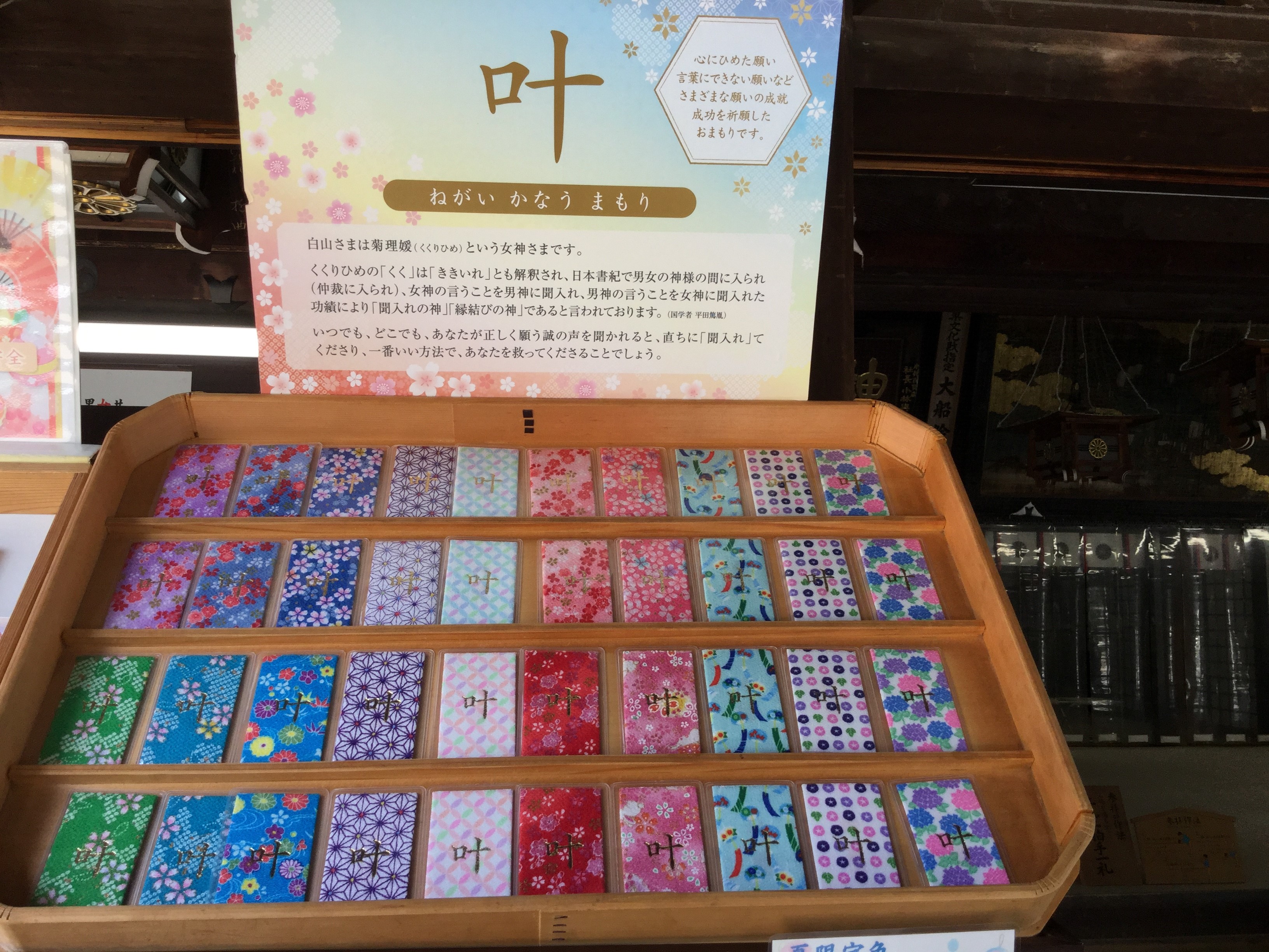 End your trip to Hakusan Shrine with a colourful omamori (お守り lucky amulet).