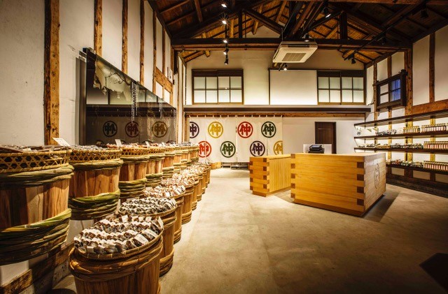 Next up, we paid a visit to Minemura Jо̄zо̄ (峰村醸造), a miso brewery. Minemura Jozo was founded in 1905, and has been manufacturing miso, soy sauce, as well as miso-zuke (味噌漬け), which is made by soaking vegetables in miso for a long time. Minemura Jozo takes pride in their fermentation technology, and also offers products like soup stock, vinegar and other seasonings.