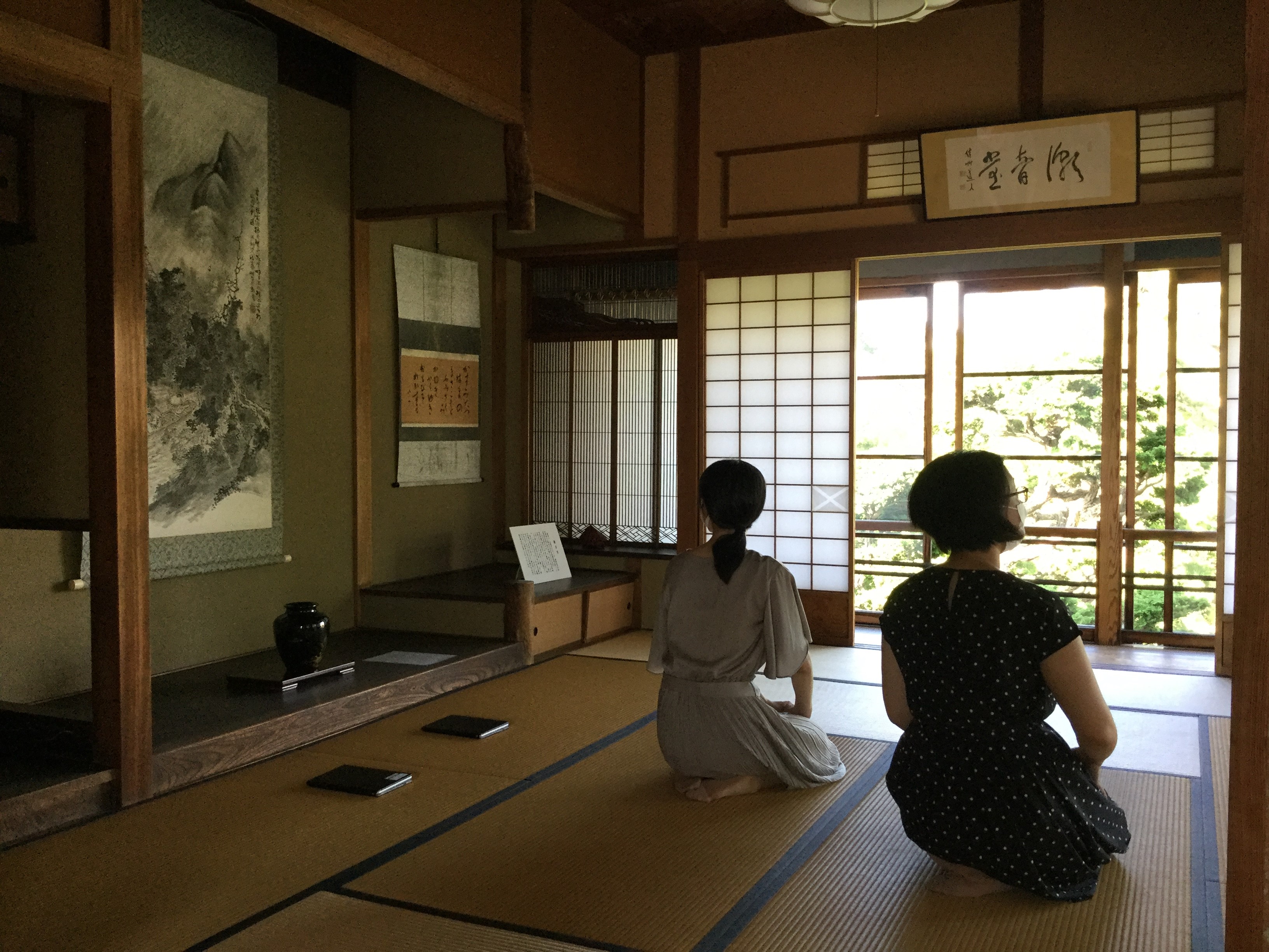 Aizu Yaichi especially liked the room overlooking the garden, and he often wrote his works here. At that time, he named the room Chо̄ondо̄ (潮音堂 a hall that where you can hear sound of the sea) because he heard the sound of the Sea of Japan. Indeed, when we visited, it was so quiet and calm that it seemed as if we could hear the sound of the sea.