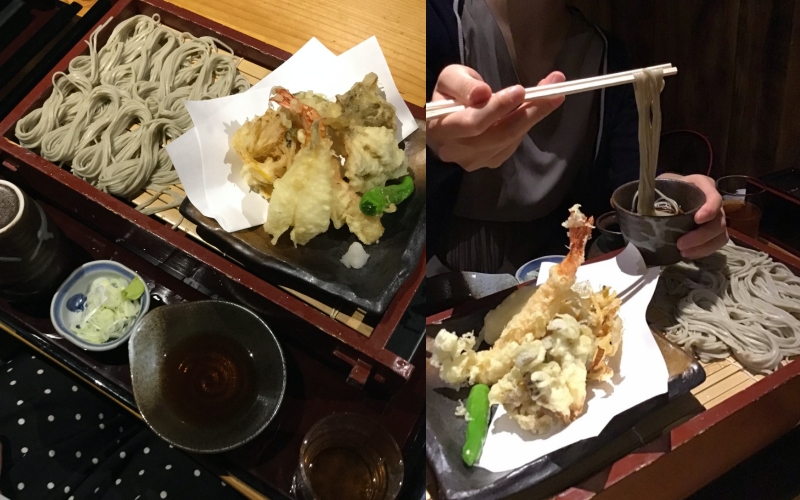 Other than sushi, another famous food in Niigata is hegi soba noodles (へぎそば), which is said to have originated from the Uonuma region. You might be wondering, how is it different from regular soba noodles? Well, the answer lies in the ingredients and serving method. Hegi soba is made by adding funori (布海苔), a type of seaweed, to the soba flour, and served on a rectangular wooden tray known as a hegi, with the soba laid out in bite-sized portions.