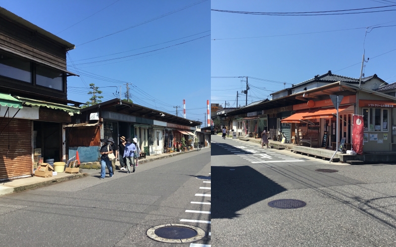 While traditional Japanese shopping streets (商店街 shо̄tengai) are disappearing, the Nuttari Terrace Street (沼垂テラス商店街 Nuttari terasu shо̄tengai) was created in the Nuttari area, by renovating old buildings of the historic town.