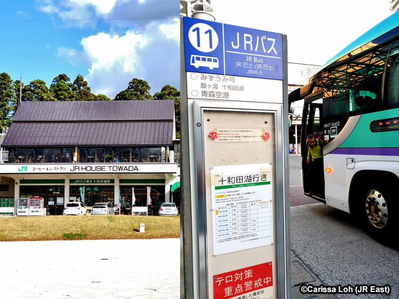 JR Tohoku bus stops at Lake Towada (Yasumiya) (left) and JR Aomori Station (right). (Image credit: JR East / Carissa Loh)