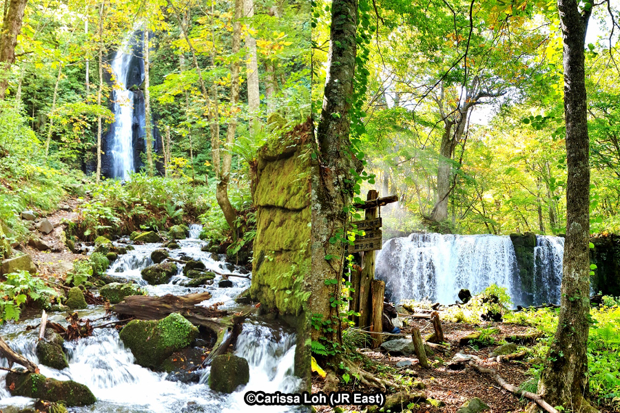 Kumoi no Taki Waterfall (left) and Choshi Otaki Waterfall (right) during summer. (Image credit: JR East / Carissa Loh)