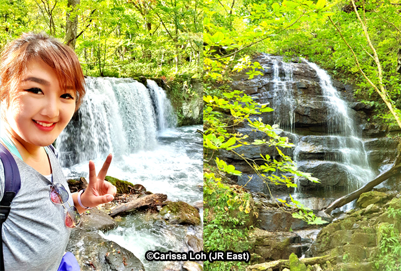 Enjoying waterfalls along Oirase Keiryu. (Image credit: JR East / Carissa Loh)