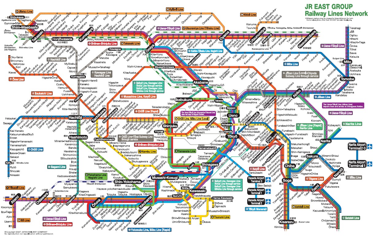 JR East's major train lines in Tokyo's metropolitan area. (Image credit: JR East)