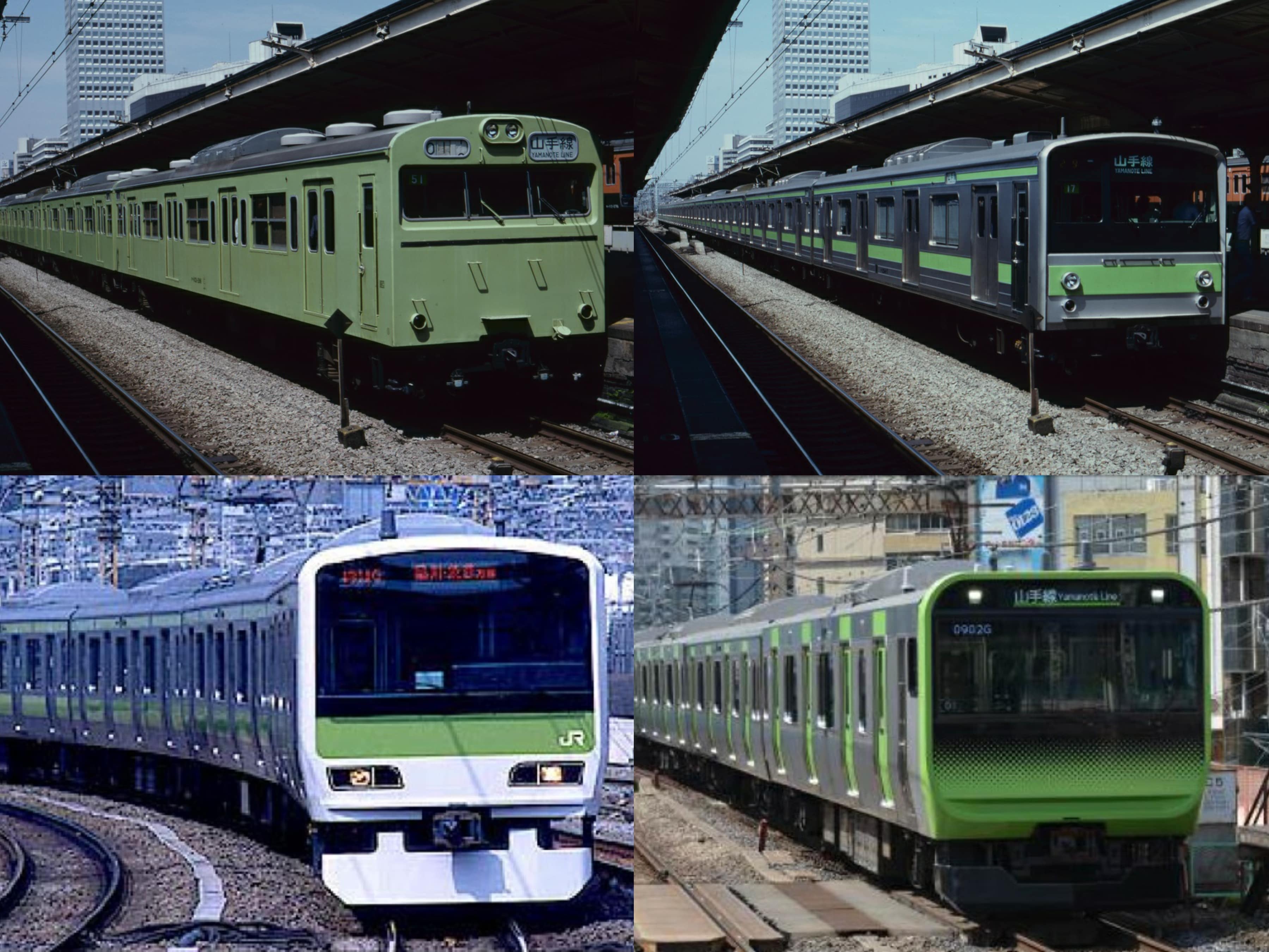 Train evolution on Yamanote Line: the 103 series (top-left) in the 1980s, the 205 series (top-right) in the 2000s, the E231-500 series (bottom-left) in 2009, and the current E235 series (bottom-right). (Image credit: The Railway Museum (top),