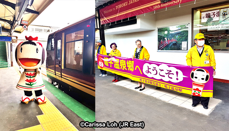 Our warm welcome upon arriving at JR Naruko-Onsen Station. (Image credit: JR East / Carissa Loh)