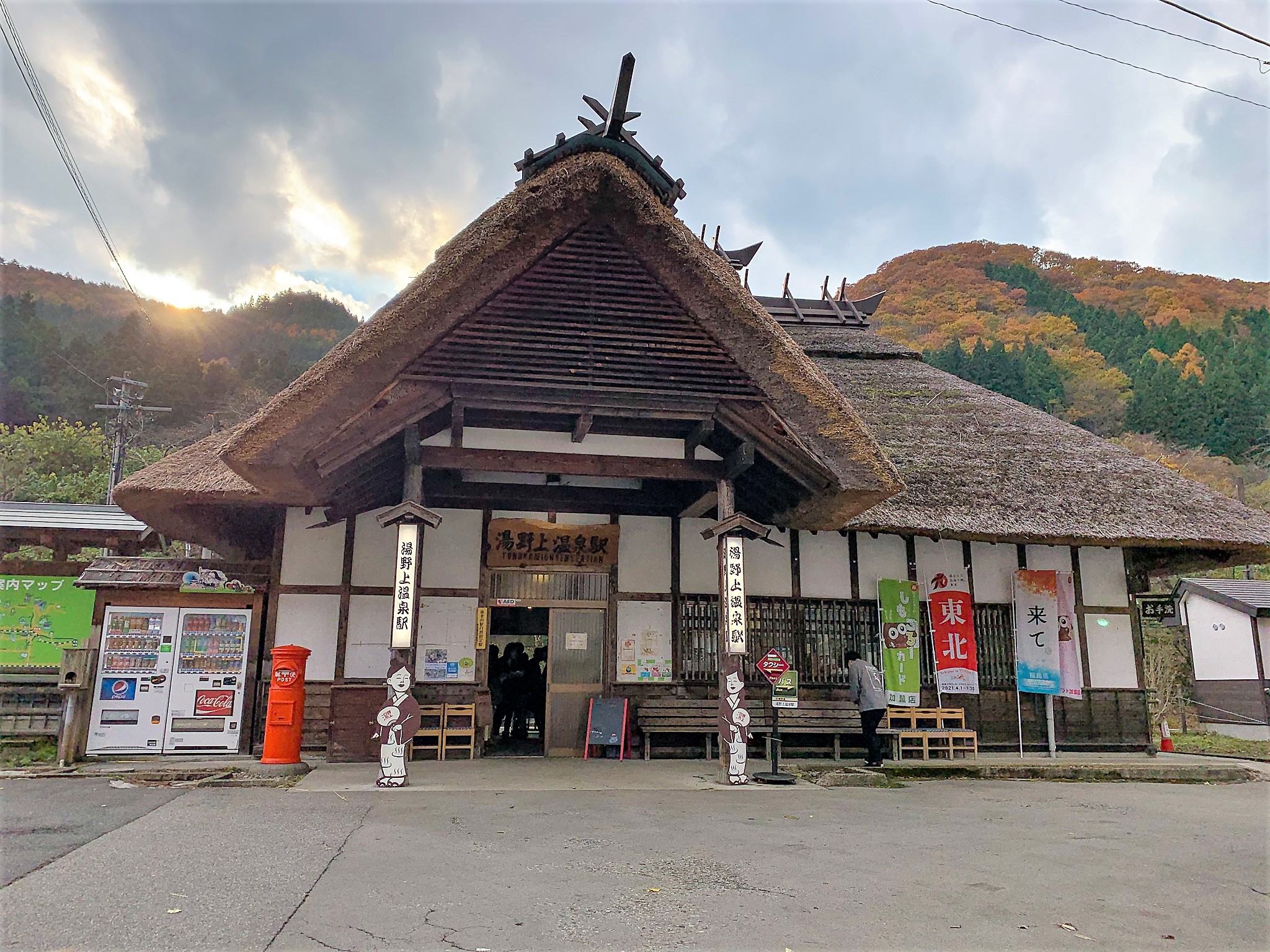Yunokami-Onsen Station is located in the rural town of Shimogō (下郷町) in Fukushima Prefecture (福島県). Visitors can reach here via the Aizu Railway Aizu Line (会津鉄道会津線 Aizu Tetsudō Aizu-sen), and upon arrival, they will be greeted by a railway station that looks more like a rural home.