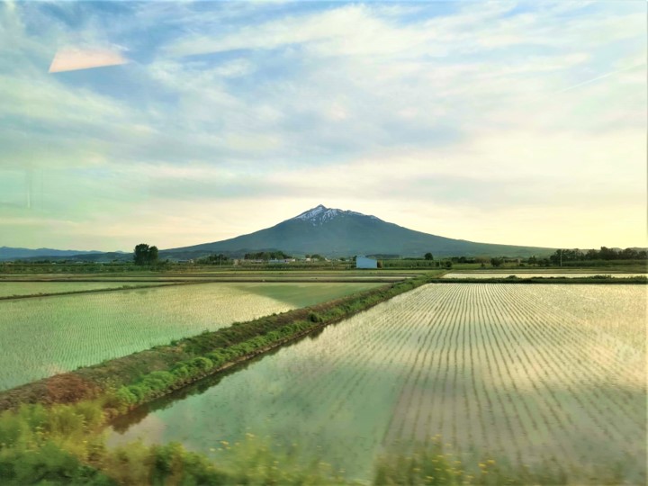 When I was riding the Resort Shirakami Aoike train, the sun was beginning to set, covering the surrounding areas in a golden hue. As I reminisced all the incredible sights that I got to enjoy the whole day, I was treated to yet another spectacular sight: a view of the majestic Mount Iwaki in the far distance, right from onboard the train.