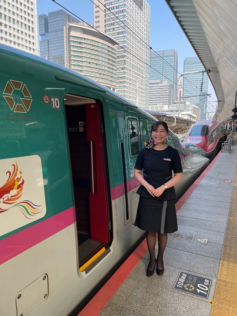 The Gran Class attendant greeting all with a smile. (Image credit: East Japan Railway Company)