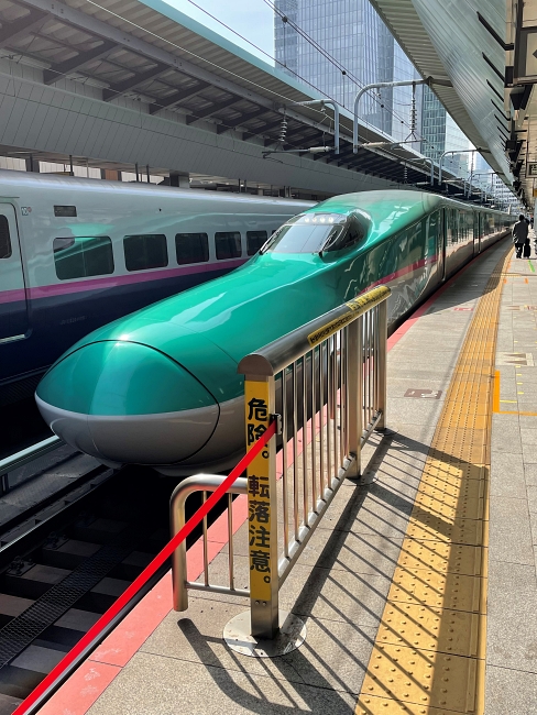 With its iconic, streamlined nose and its striking green colour, the E5 series, though introduced a mere ten years ago, has quickly risen up the ranks to become the de facto face of the Tohoku Shinkansen (東北新幹線)! Designed to operate at the fastest possible speed of the line, the introduction of this train slashed travelling time between Tokyo (東京) and Shin-Aomori (新青森) to under 3 hours, and made Sendai (仙台) a mere 1.5 hour journey from Tokyo.