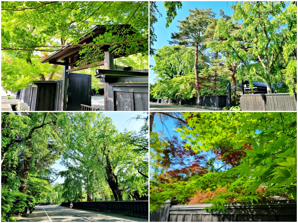 Looking stunning against a backdrop of old samurai residences, the plethora of trees erupt in vivid shades of green during the shinryoku season. Other than shidarezakura with branches that fall downward, there were also a handful of pine trees, maple trees, ginkgo trees, and more.
