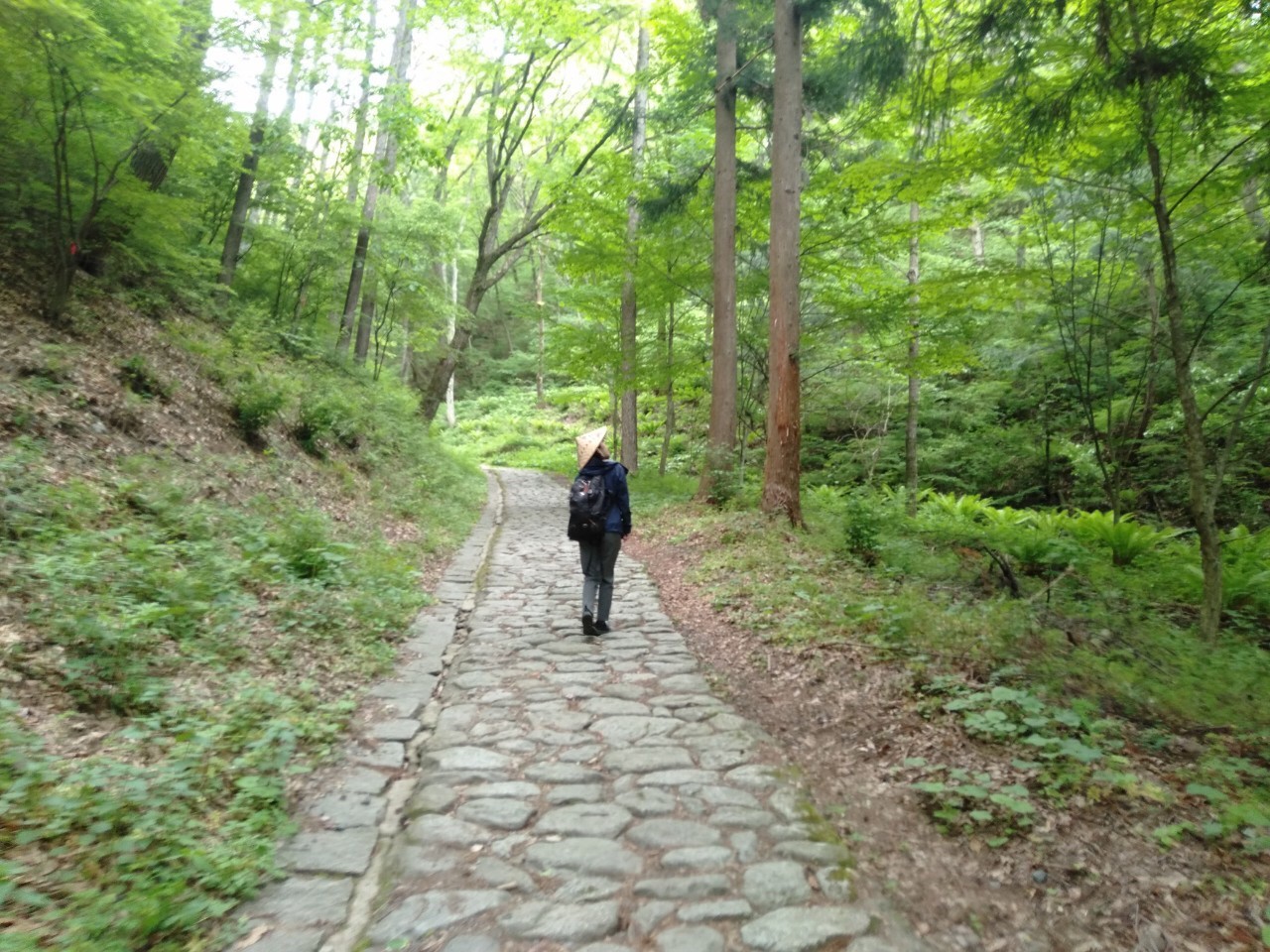 ③ Go uphill between private houses, and you will reach a beautiful green mountain pass. Just when I thought I felt a bit tired, I became refreshed after seeing the cobblestone path. My thoughts wandered to the people who made these beautiful path as I walked along step by step.