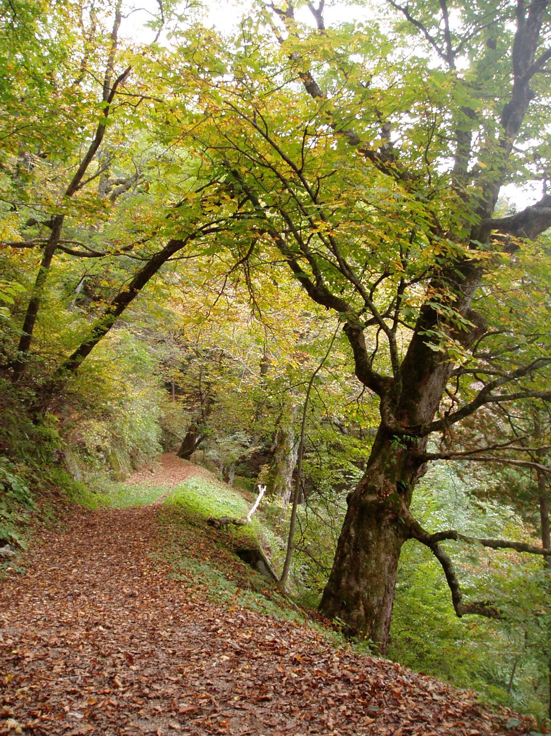 ⑤ At the end of the uphill climb, mountain pass became flat and large horse chestnut trees (トチノキ tochi-no-ki) welcomed me. The horse chestnut trees gave me energy. Also, the drifting scent of the trees and flowers made me feel truly surrounded by nature.