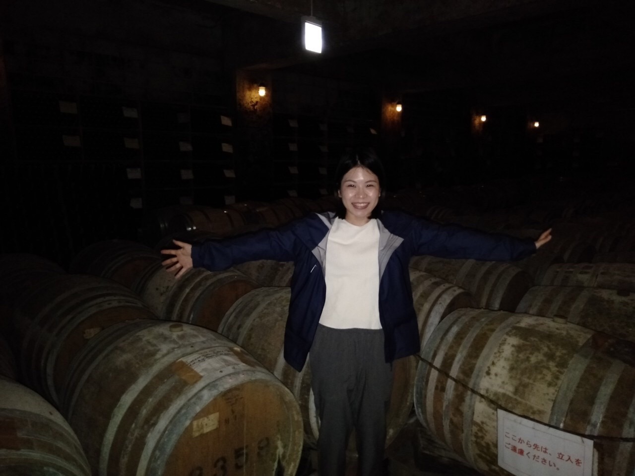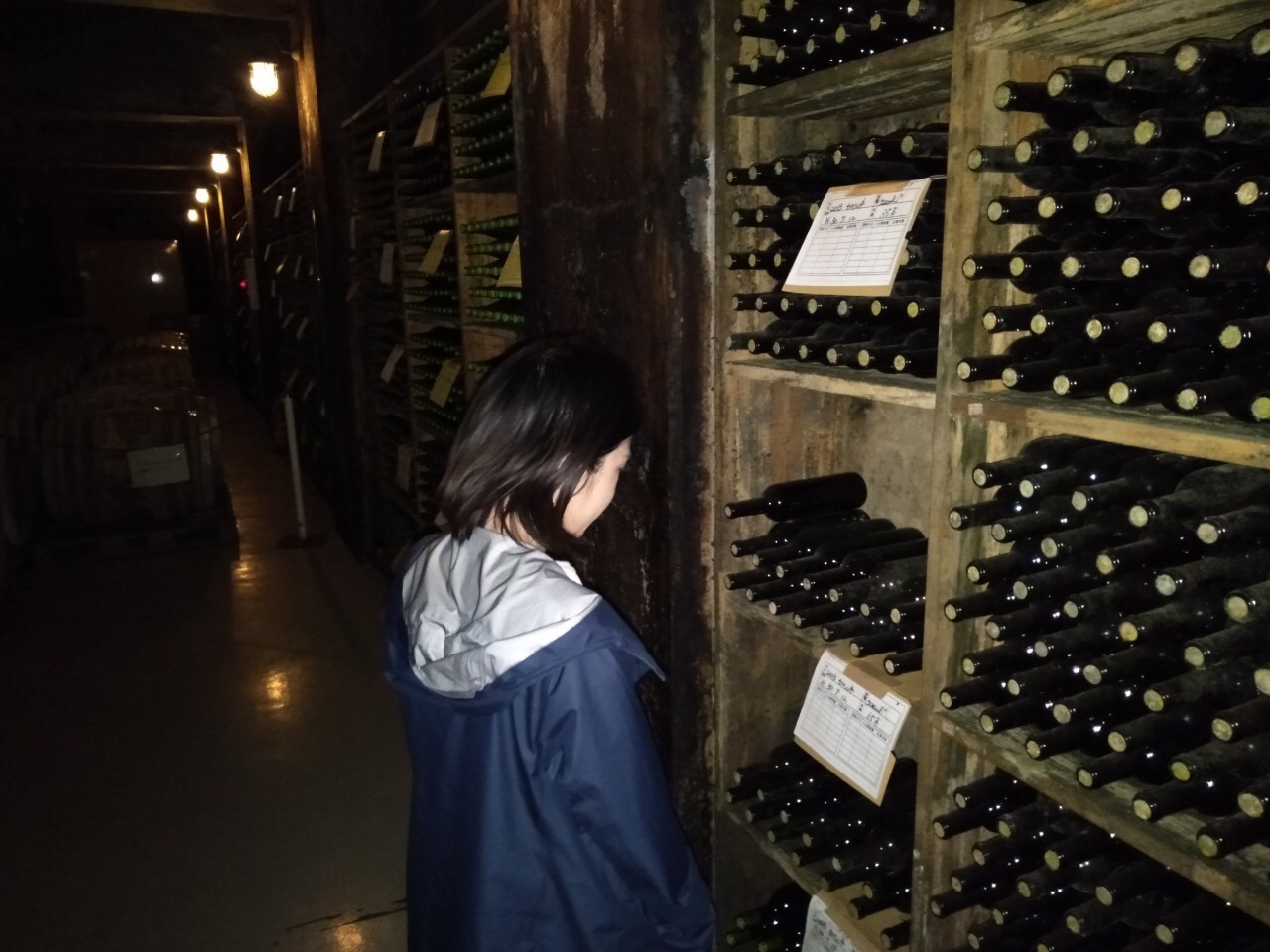 To my surprise, the temperature in the cellar was really cool. The cellar is not only located underground, but it also surrounded by groundwater and little stones. Thanks to these coincidences, the cellar can be kept cooler without any air-conditioning. No temperature change, no sunlight and 60-80% humidity are important to be able to keep wines longer.