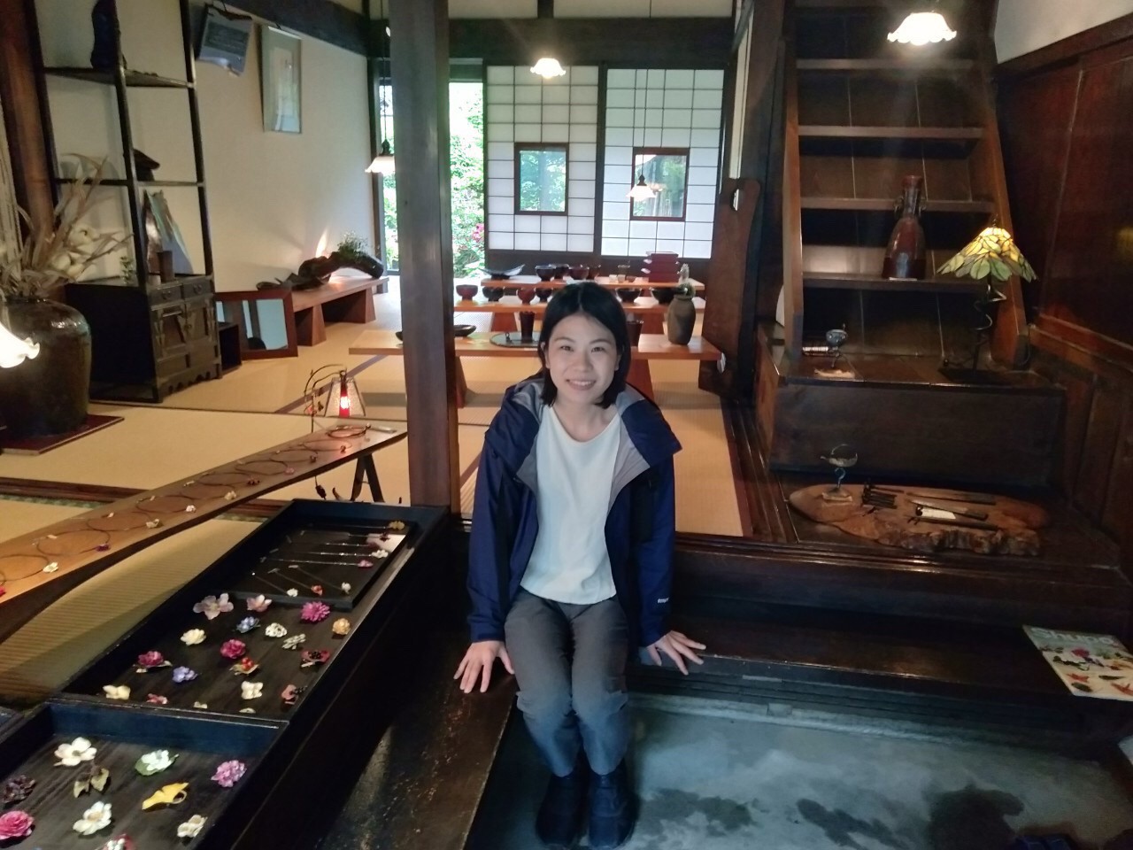 The quaint door, tatami and garden caught my eyes. Here there were accessories of real flowers and plants made with by a special process on sale. The flowers and plants of each season are made into accessories, so that you can preserve and wear their beautiful colours forever. The flowers are not artificially coloured; their natural colours are already so beautiful.