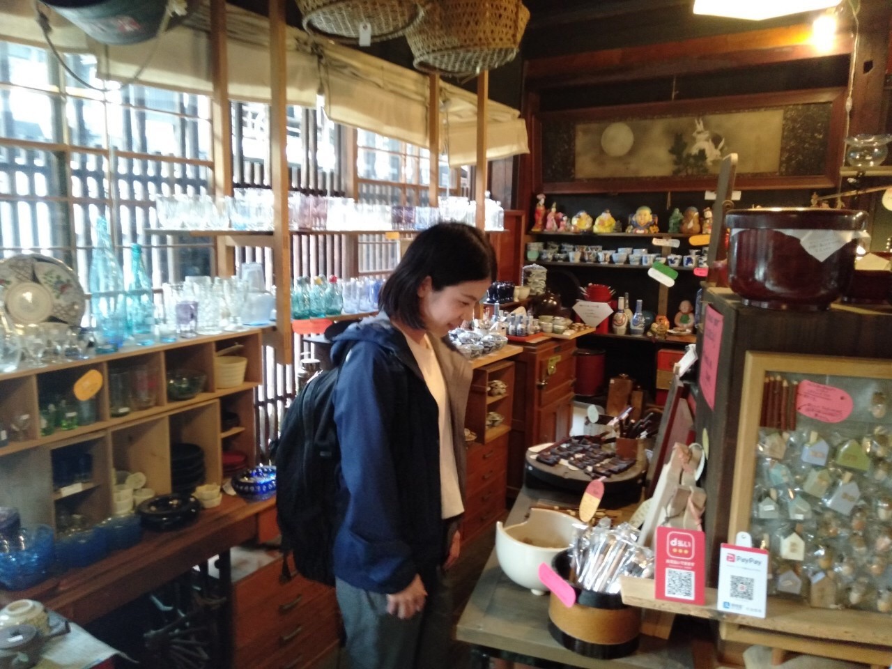 The moss ball (苔玉 kokedama) and pottery caught my eyes, so I entered the store. There were so many old knick-knacks and the store had a perfect atmosphere. There were things that I had never seen or used before, but they brought back memories, and they were so lovely.