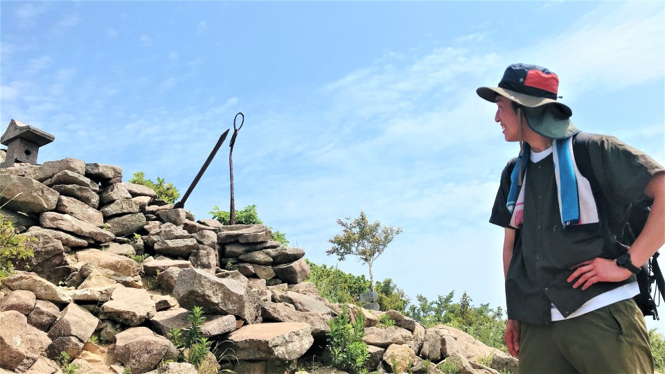 Also, you will find something like a stick on the summit, which is actually an anchor. It is said that the Sea of Japan seen from here was once popular for fishing for herring (ニシン nishin), and anchors were devoted to pray for the safety of the fishermen out at sea, and for bountiful harvests.