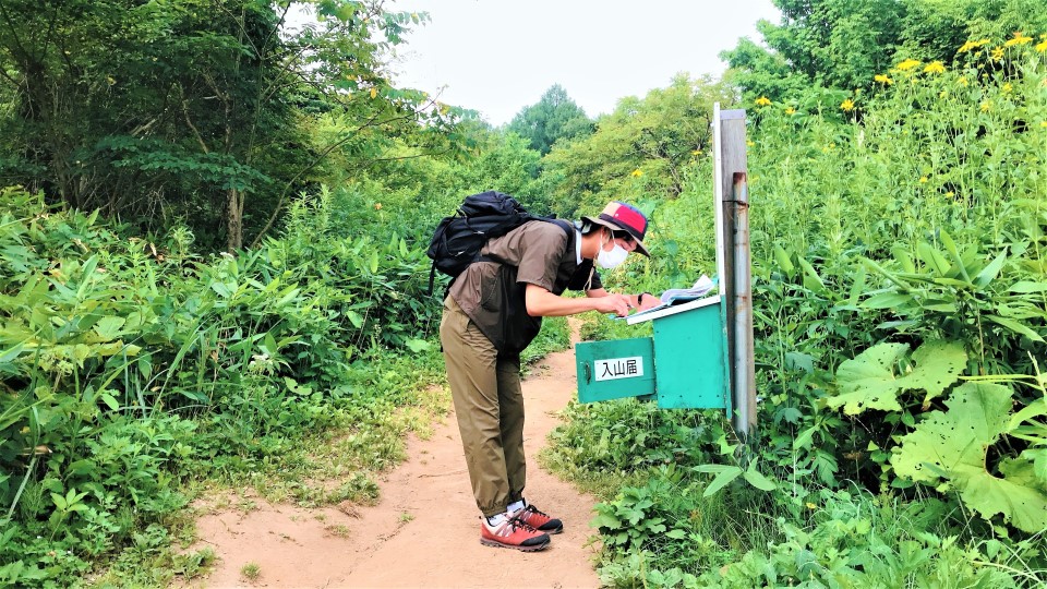 Recording our details at Shioya-Maruyama’s trailhead. (Image credit: Hokkaido Railway Company)