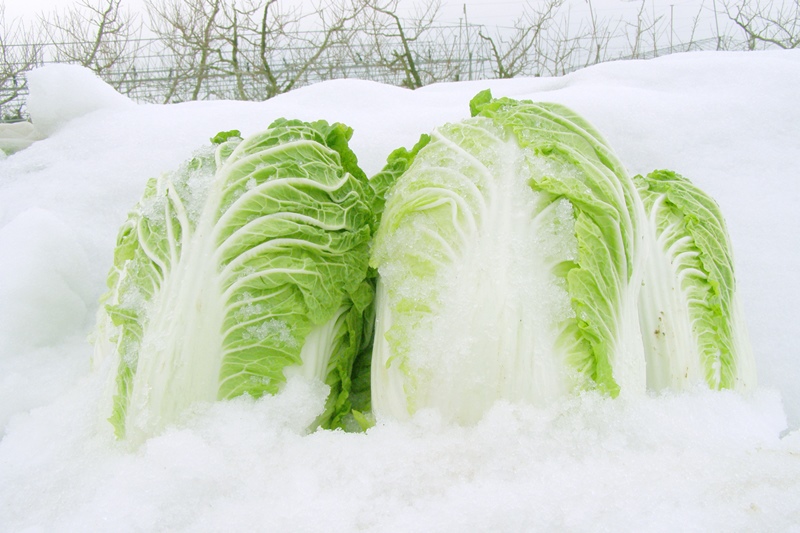 Chinese cabbages kept under the snow. (Image credit: 全国有機農法連絡会)