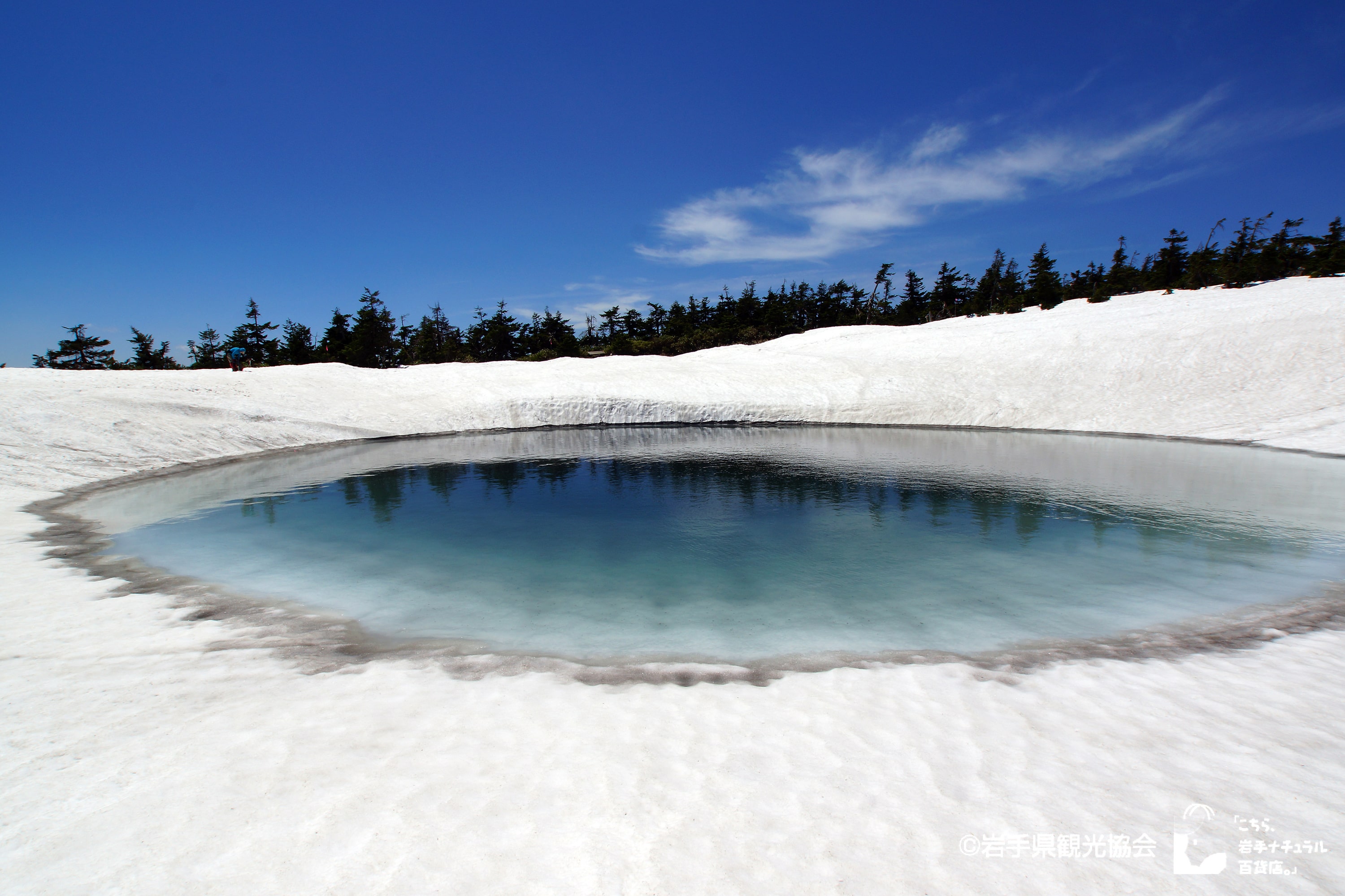 When you visit Hachimantai, you will learn simply how vast the entire area is. Take on the Hachimantai Nature Observation Trail, and you will see numerous lakes and ponds. Go up the Hachimantai Viewpoint, and not only will you see Hachimantai Pond (八幡平沼)—an outstanding water body that has become symbolic to the whole region―but another amazing snow formation on the Dragon Eye Kagami Pond (ドラゴンアイ鏡沼 Doragon-Ai Kagami- numa). Located near the peak of Mount Hachimantai, the pond’s ominous name comes from how the pond looks like a dragon’s eye because of the melting of snow. Visitors can witness this in spring from late May to early June.