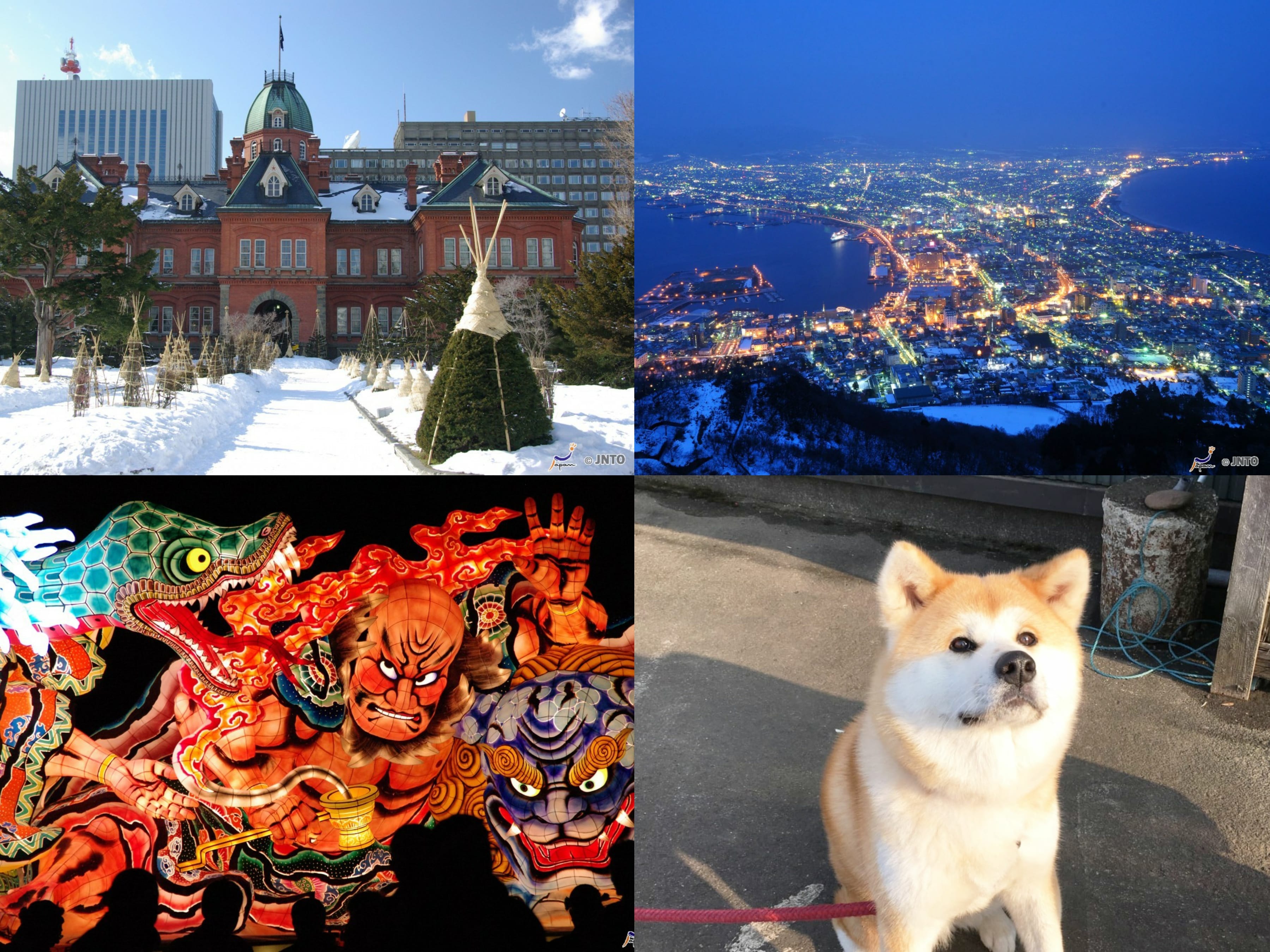 Hokkaido (top) and northern Tohoku (bottom). (Image credit: (clockwise from top left) Yasufumi Nishi, Hokkaido Tourism Organization, Akita Inu Tourism, JNTO / Aomori Prefecture)